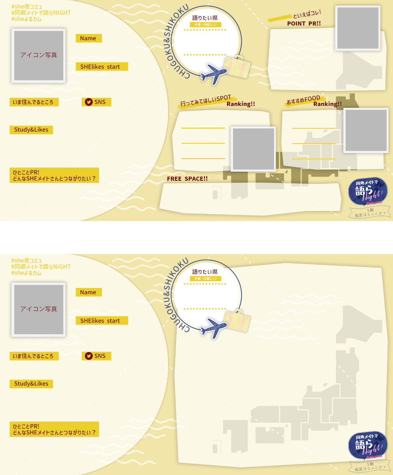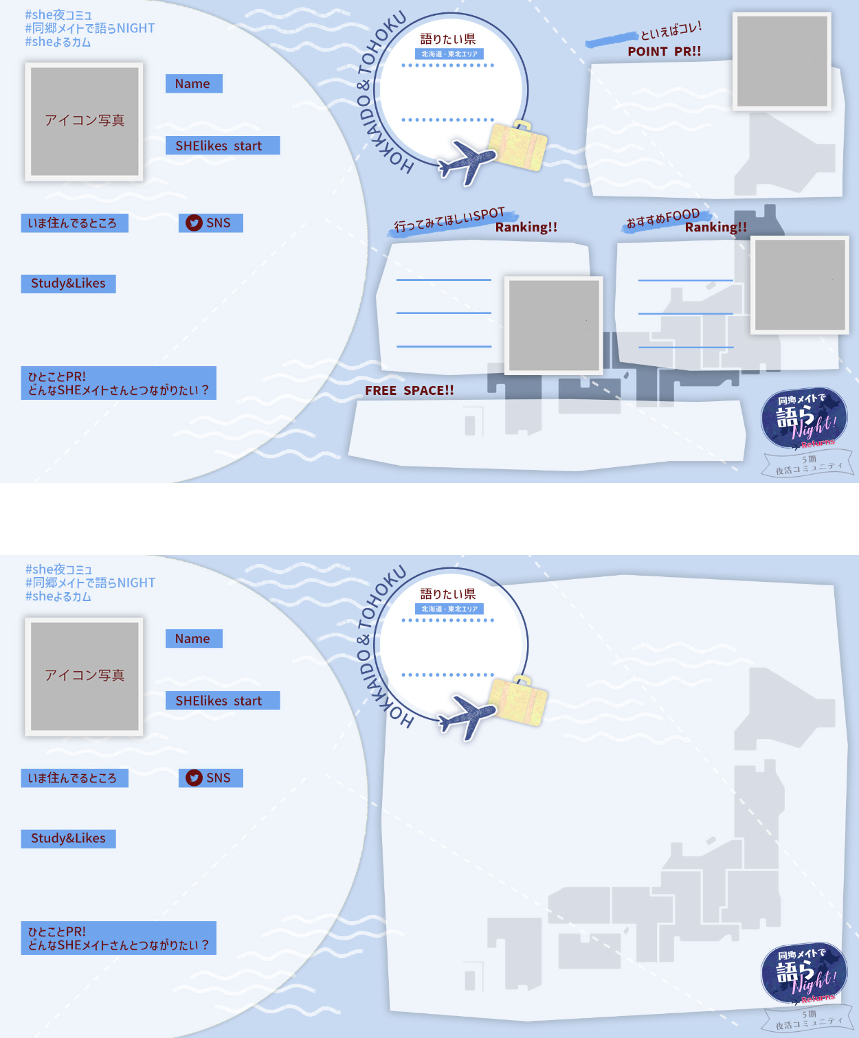 ・前回イベントのワークシートの優れたところ(記入のしやすさ、レイアウト)を踏襲しつつ、イベント目的をメンバーで再度話し合い、「語りたい県とその人」がしっかり見えるワークシートにすべく、自己紹介パートを強化した。
