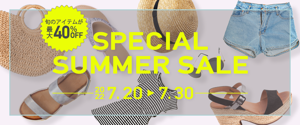 ECサイトへ遷移するためのバナー。何が購入出来るのか一目でわかるよう商品を配置し、20代〜30代の女性向けのポップなイメージで制作しました。夏らしいスケルトンのあしらいを入れています。ポップさがあるけど子供っぽくならないように、くすみ系のカラーを使用しています。