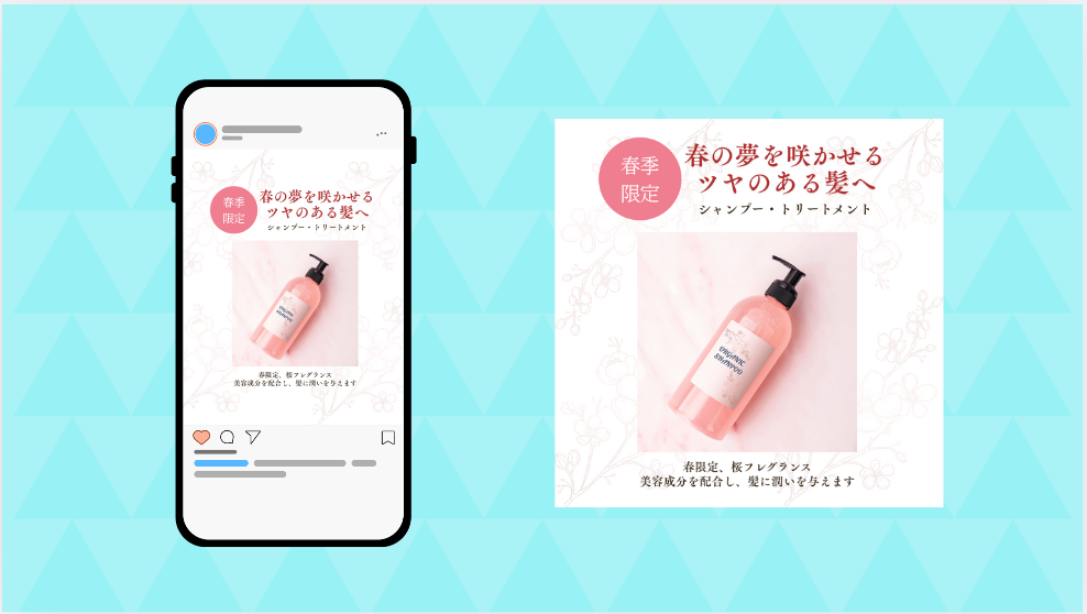 ◇別のパターンも作成しました。こちらは背景を桜の写真にしました。桜を前面に出したデザインになっています。
