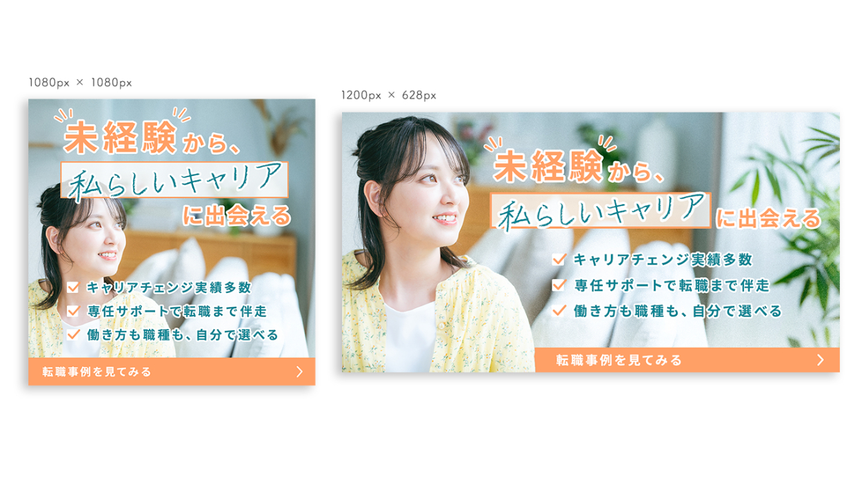 架空の、女性向け未経験転職サイトの広告バナーを制作しました。
