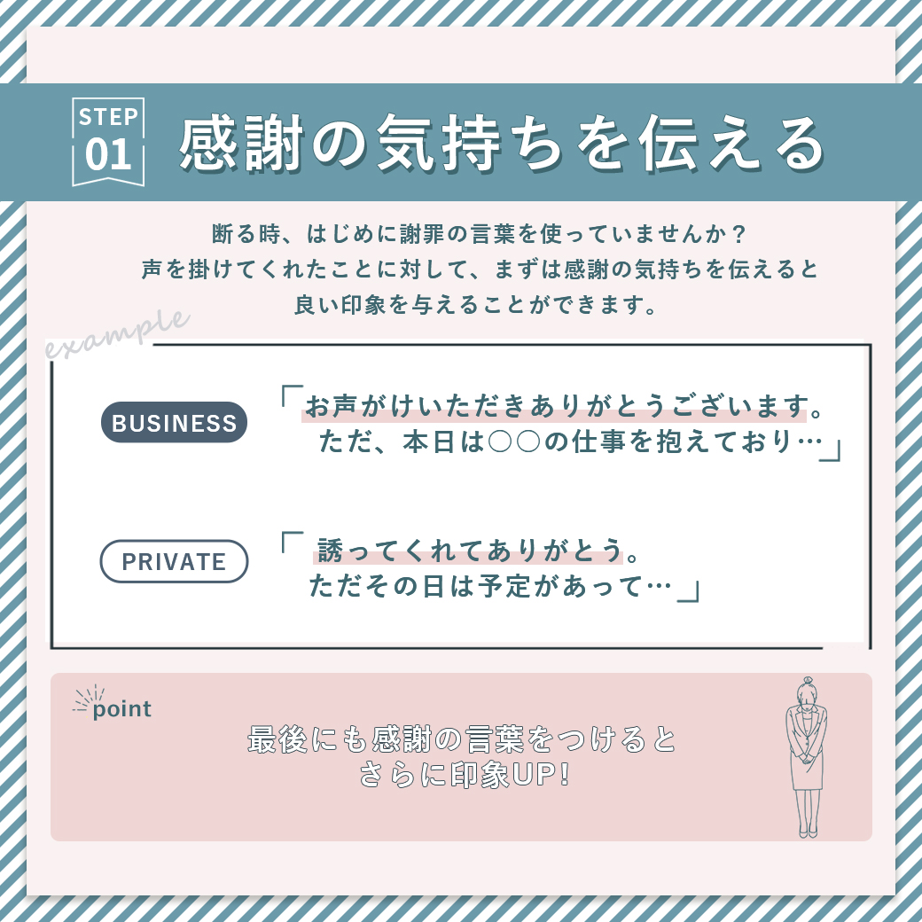 SNS投稿バナー maya 複業Webデザイナー OVERVIEW SHElikesのSNSアカウント掲載用バナー 20代~30代の働く女性をターゲットとして、「マイナスな印象を与えず断る秘訣」をテーマにTips投稿バナーを制作しました。