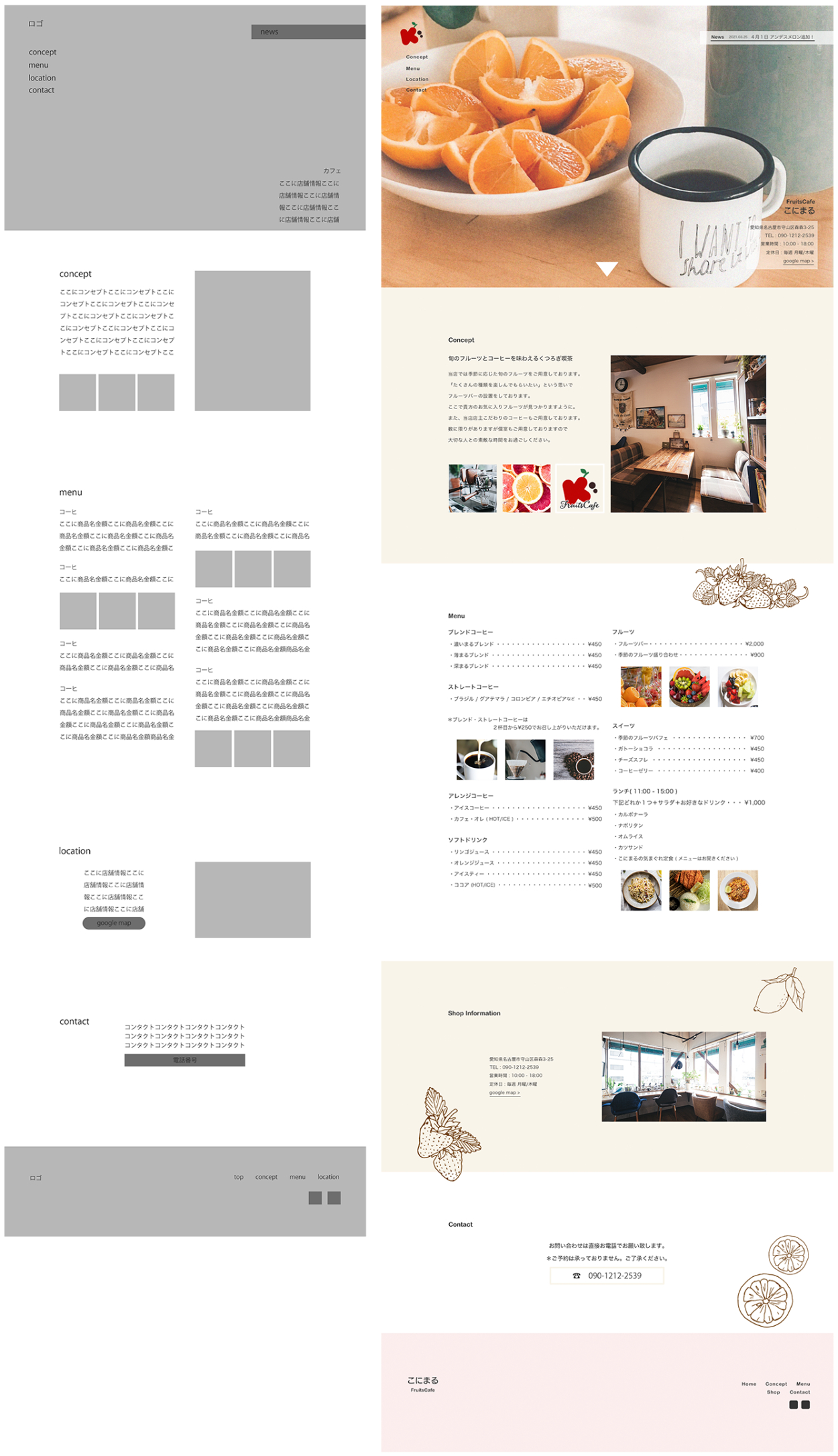・ページ移管しなくても伝わるLPの特徴を活かしてメニューのセクションをお店のメニュー表のように配置