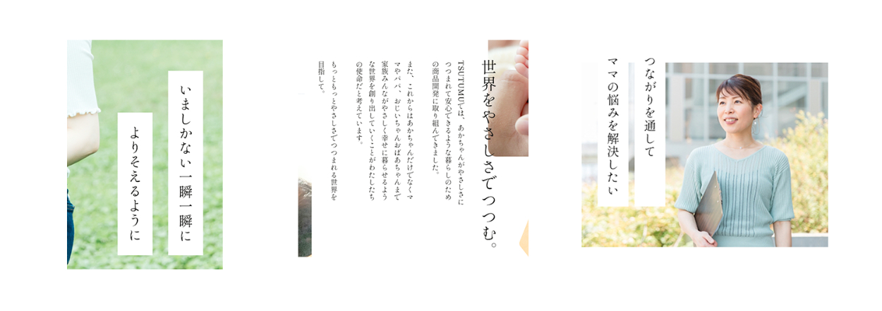 ・上記のようにメッセージ性のある文章において、縦書きにしフォントを明朝体を選択しより深く心に響くように工夫しました