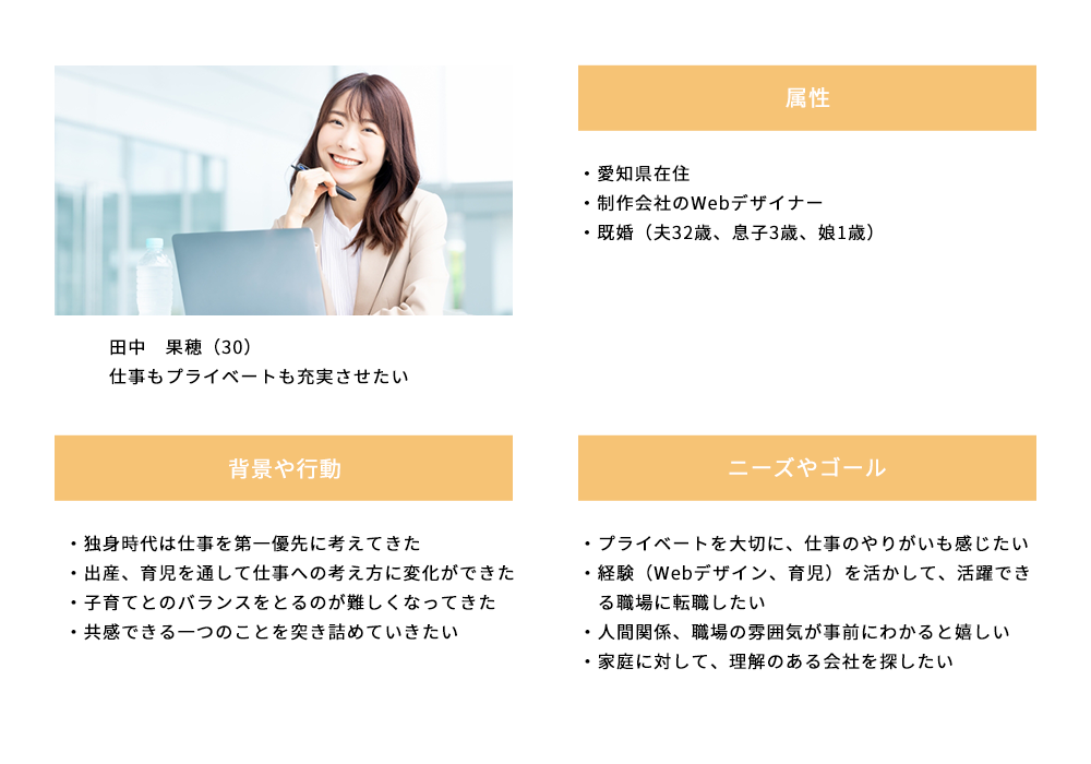 依頼内容を踏まえ、ターゲットのペルソナとユーザーストーリーを深掘りしました。