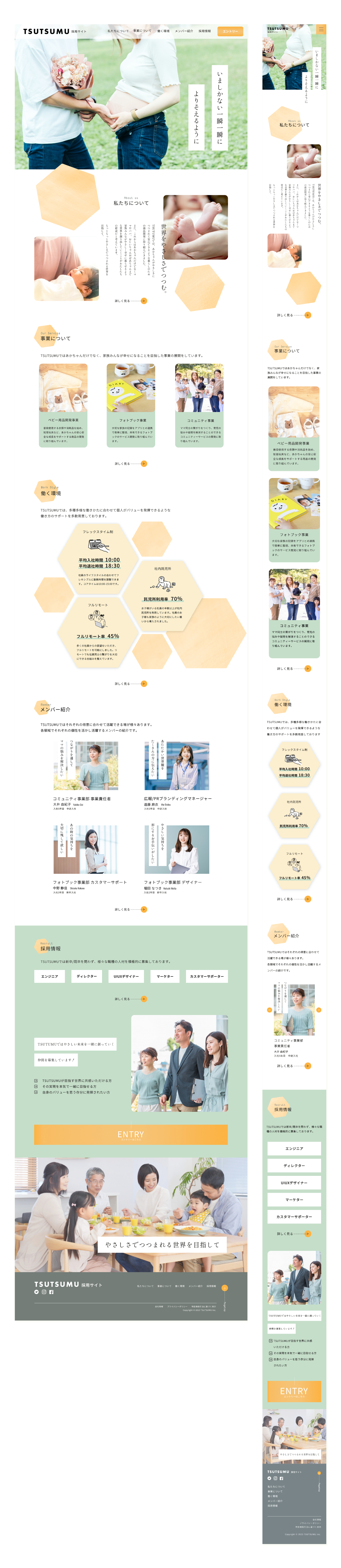 SHElikes MULTI CREATOR COURSEの課題にて、ベビー用品会社の採用サイトLP制作に取組みました。クライアントからの要件書を元に、適切な配置提案も加えたPCとSPのデザインカンプの制作から実装まで取り組みました。※架空のクライアント
