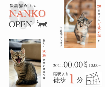 【自主制作】保護猫カフェOPENの訴求バナー(Canva ver.)