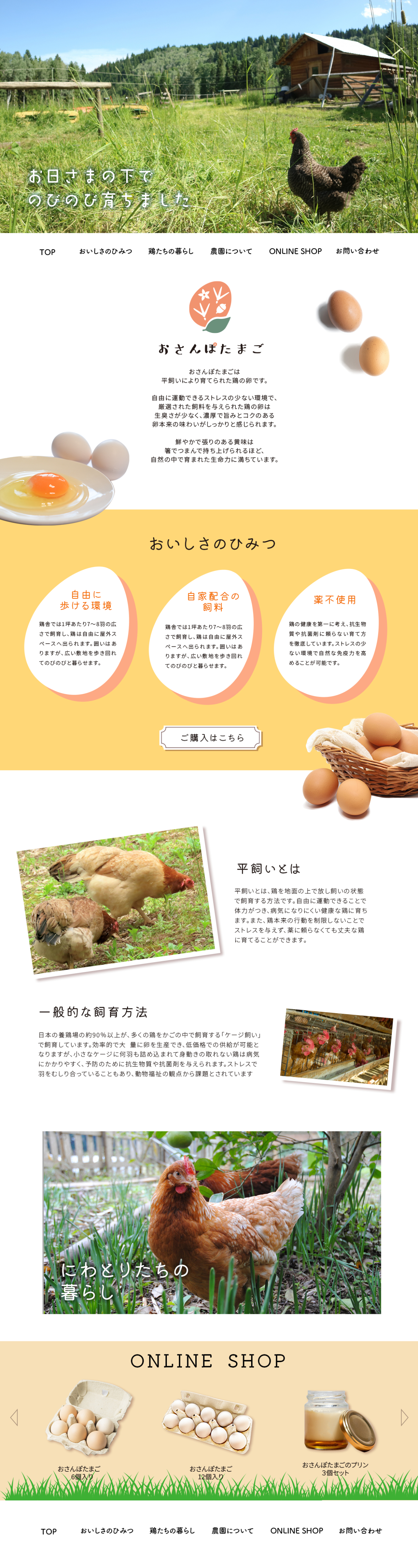 自然でナチュラルな雰囲気、卵の黄身の美味しそうな色を基調にしています。