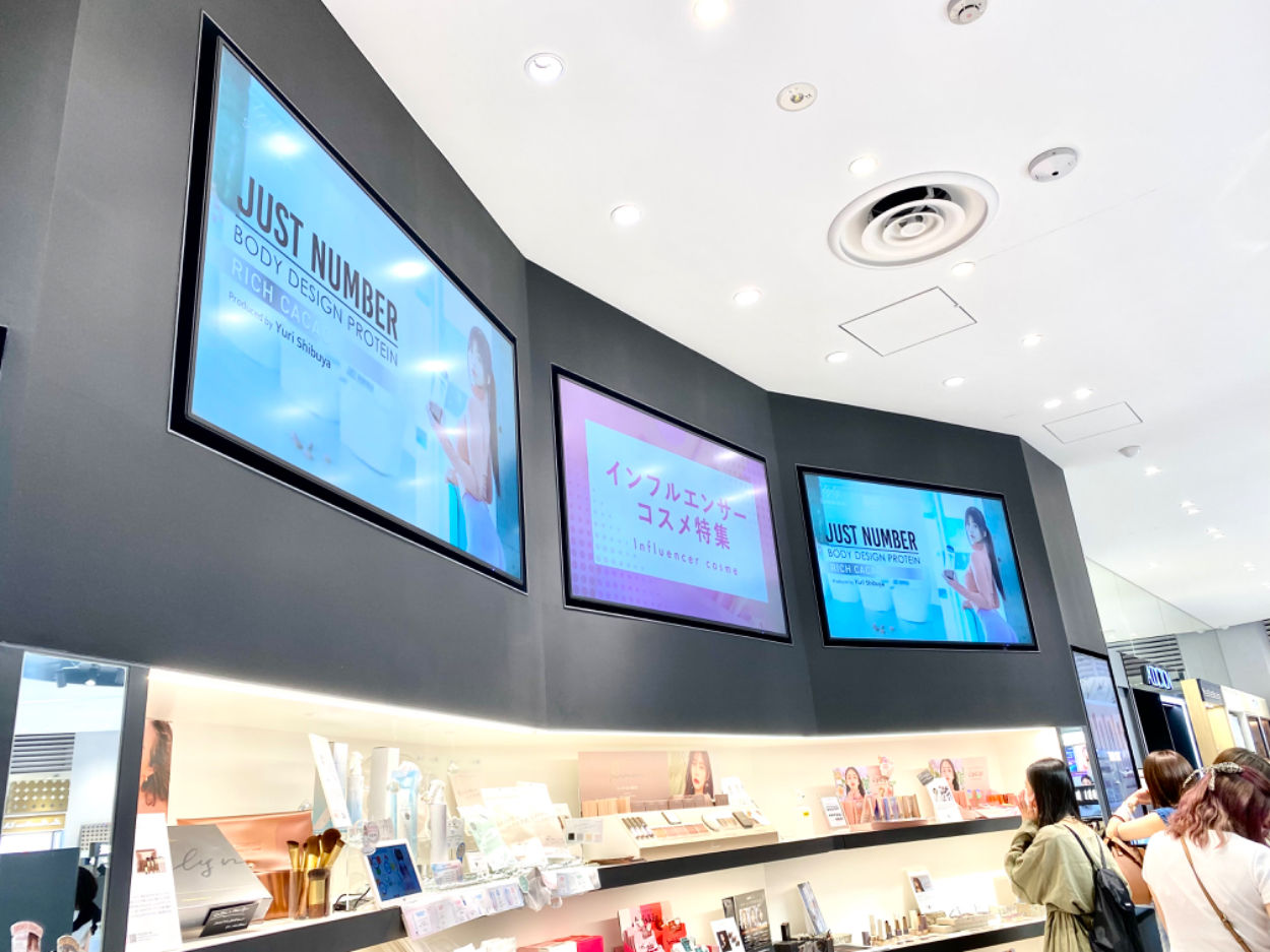 【デジタルサイネージ】インフルエンサーブランドのポップアップ(アットコスメトーキョー) MOMO デザイナー OVERVIEW 原宿のアットコスメトーキョーにて行われた、インフルエンサーブランドのポップアップに使用。 サイネージ画像と棚作りを担当 YEAR 2021 [サイネージ画像][展開写真]