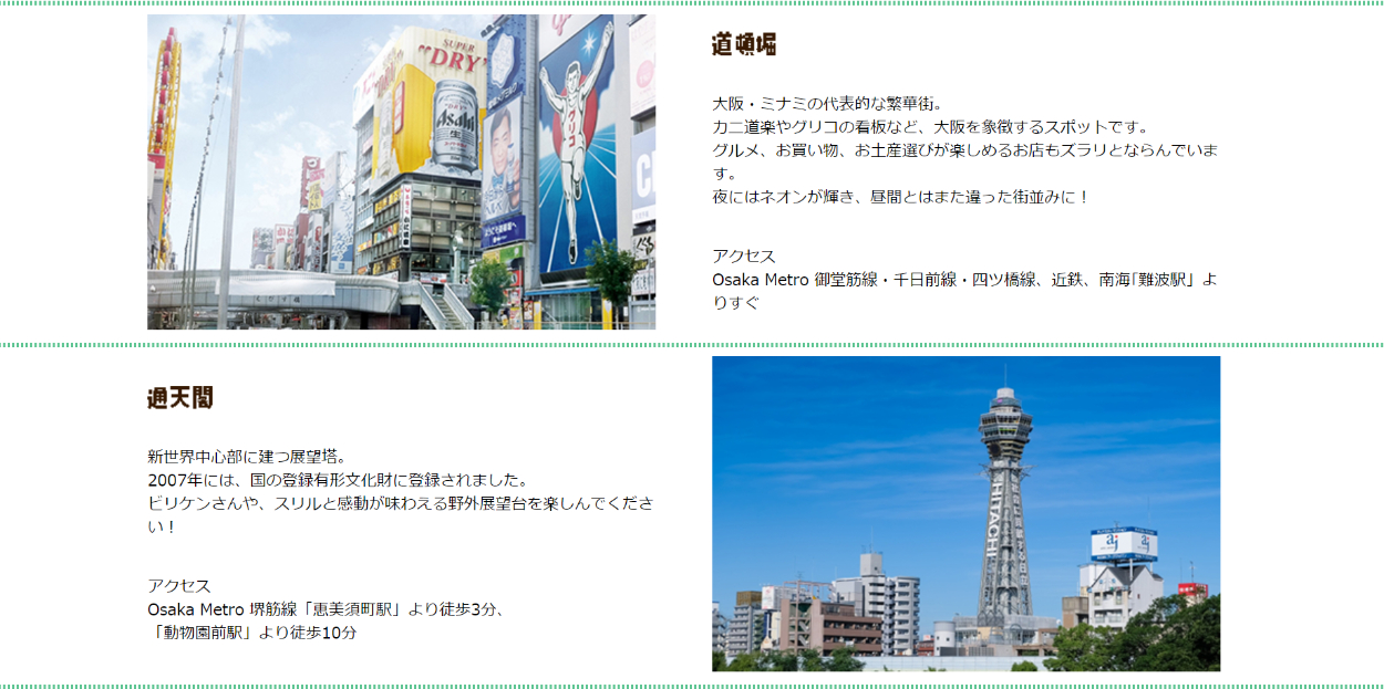 大阪出身なので、大阪の魅力が伝わるサイトを作ってみようと思いました。