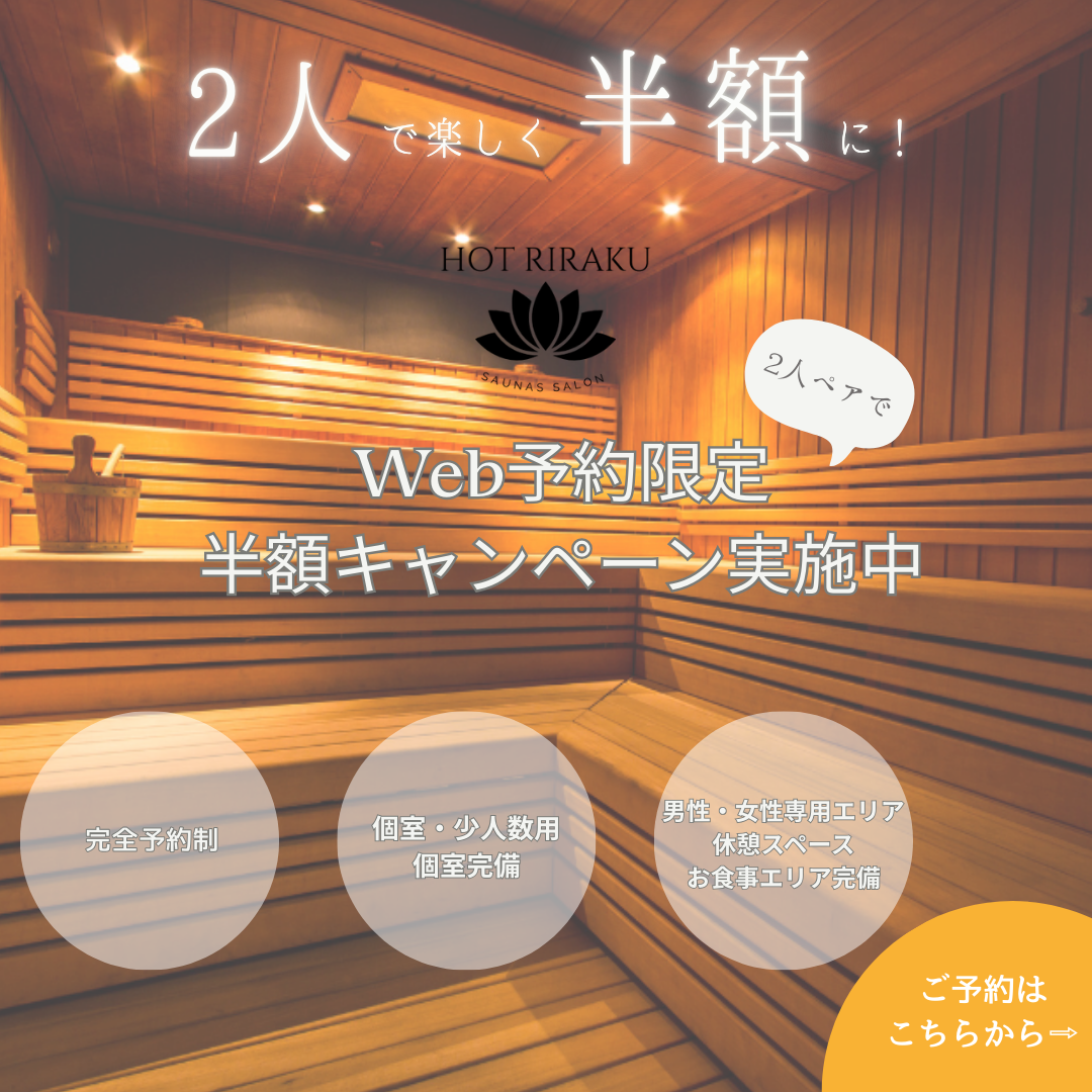 お友達・カップルで予約していただけば半額になるというキャンペーンのバナーです。
