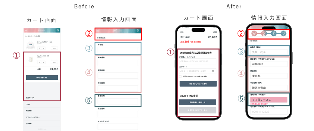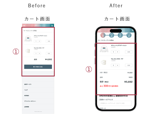 ①会員(SHElikes会員、リピーター購入)はログインすることで 自動で情報連携