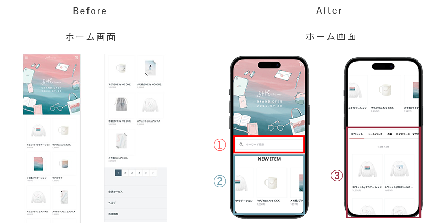 1 ホームに検索欄とカテゴリを設置して希望の商品を見やすくする
