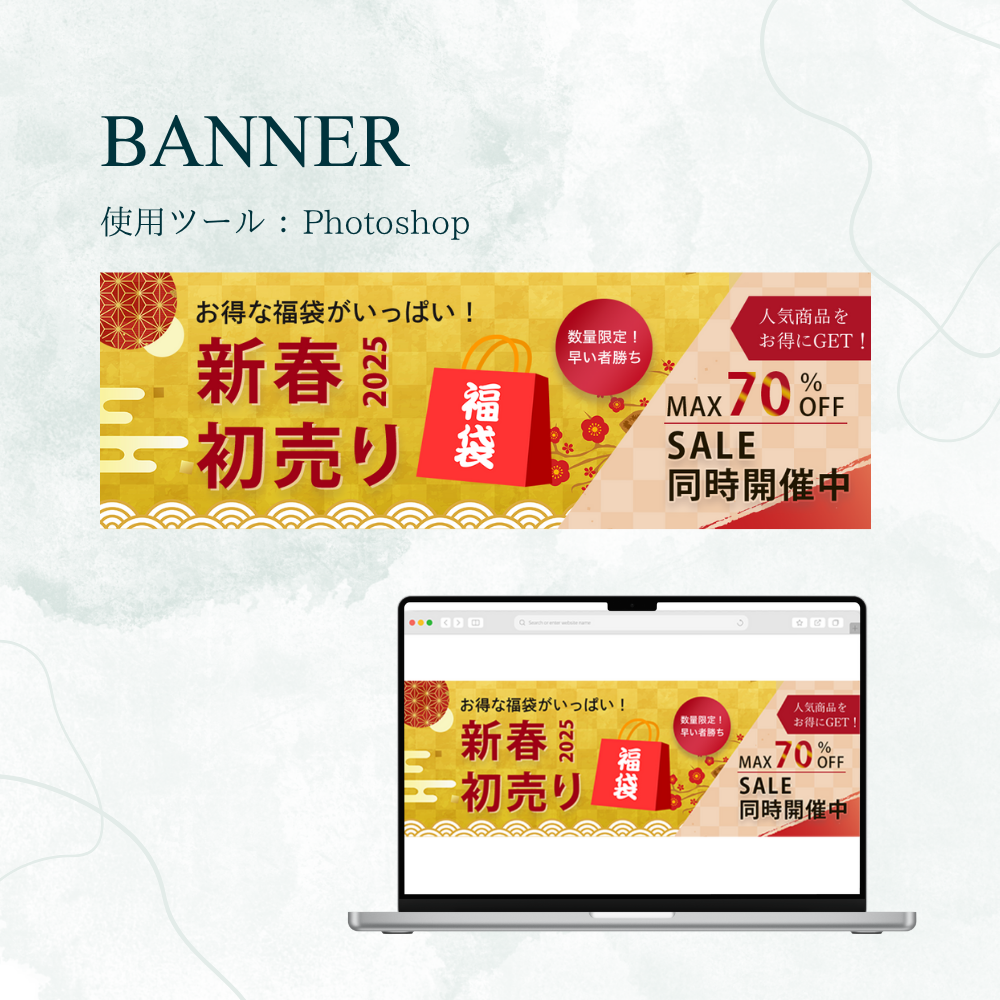 ・クリック誘導: バナーからお得な福袋情報ページへの流入を促進。