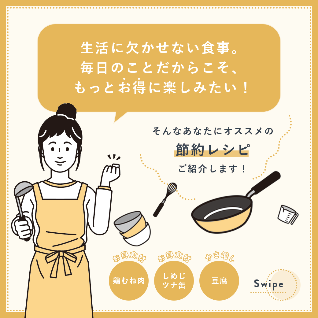 SHE株式会社が運営する「SHEmoney」様のSNS(Twitter・Instagram)に掲載する、「節約レシピ」をテーマとしたバナーを制作しました。