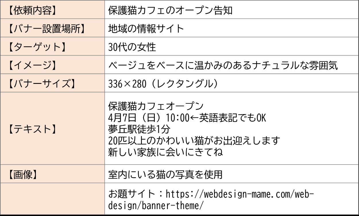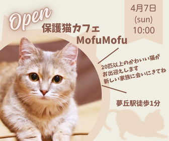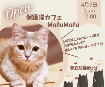 地域の情報サイトに掲載される保護猫カフェのオープンバナー告知を作成しました。 (お題サイト:https://webdesign-mame.com/web-design/banner-theme/) 使用ソフト:Canva