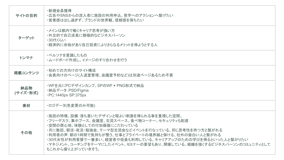 コワーキングスペースWebサイト