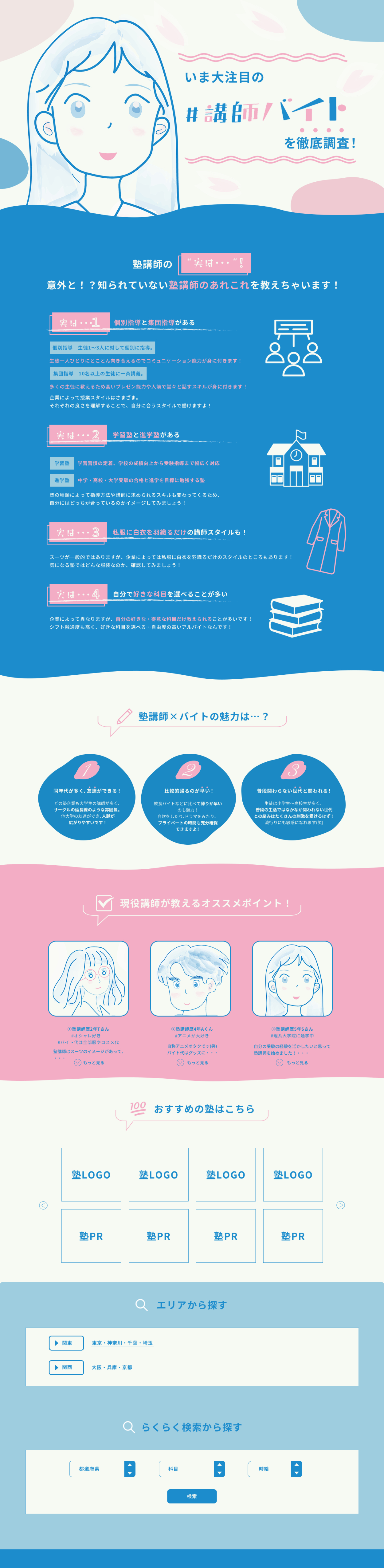 ・塾講師募集における、女子大学生をターゲットとしたLP作成