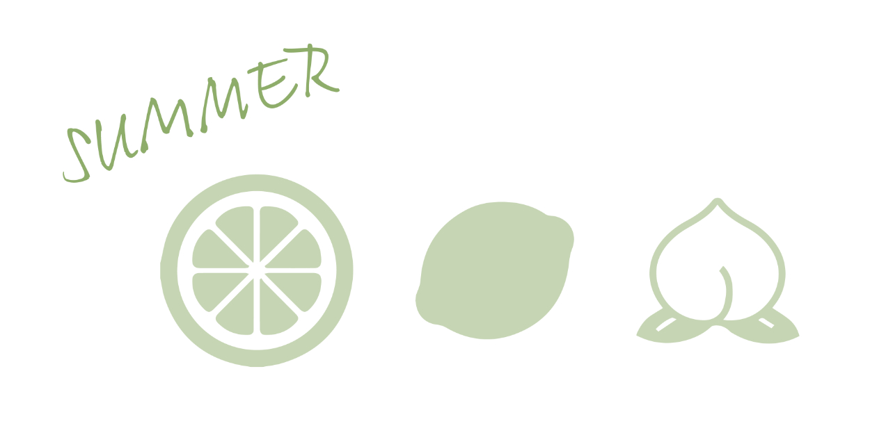 また、背景にライム、レモン、桃を配置して夏っぽさをだしました。