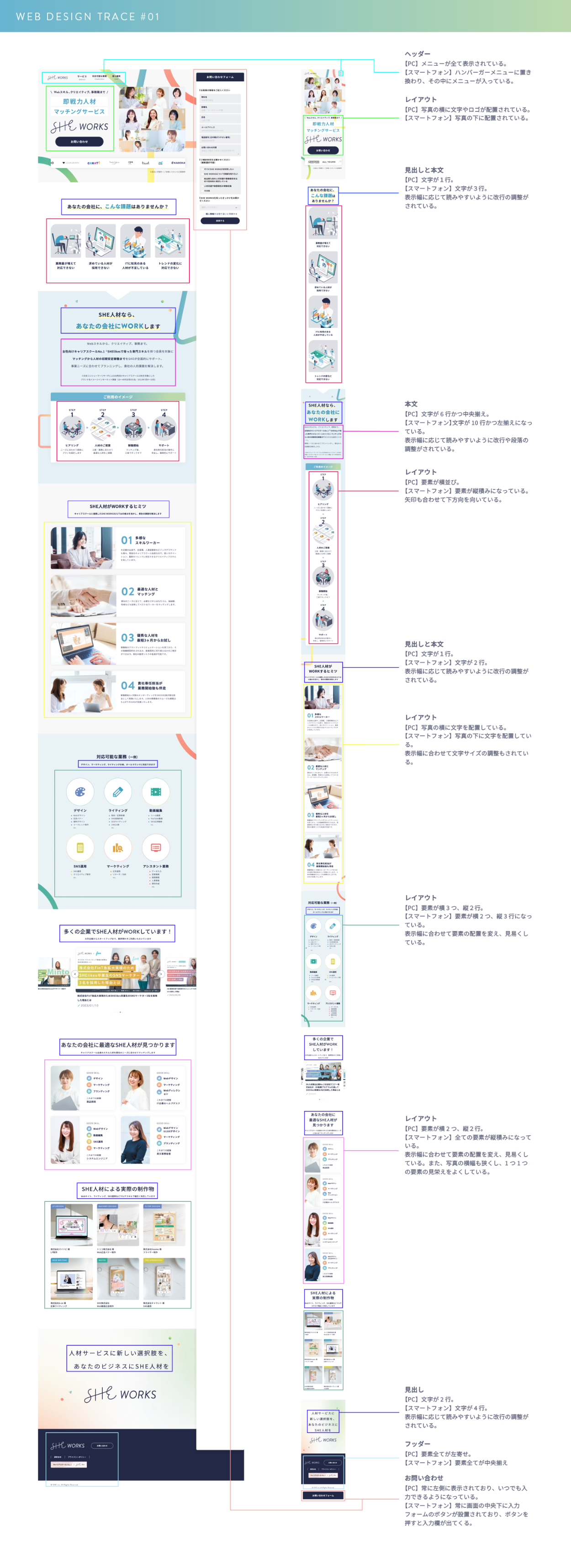 - カラーの種類をかなりたくさん使用しているが、あしらいや、アイコンなどの小さい要素で使用することにより、色が全体の統一感を邪魔せずにアクセントになっている。