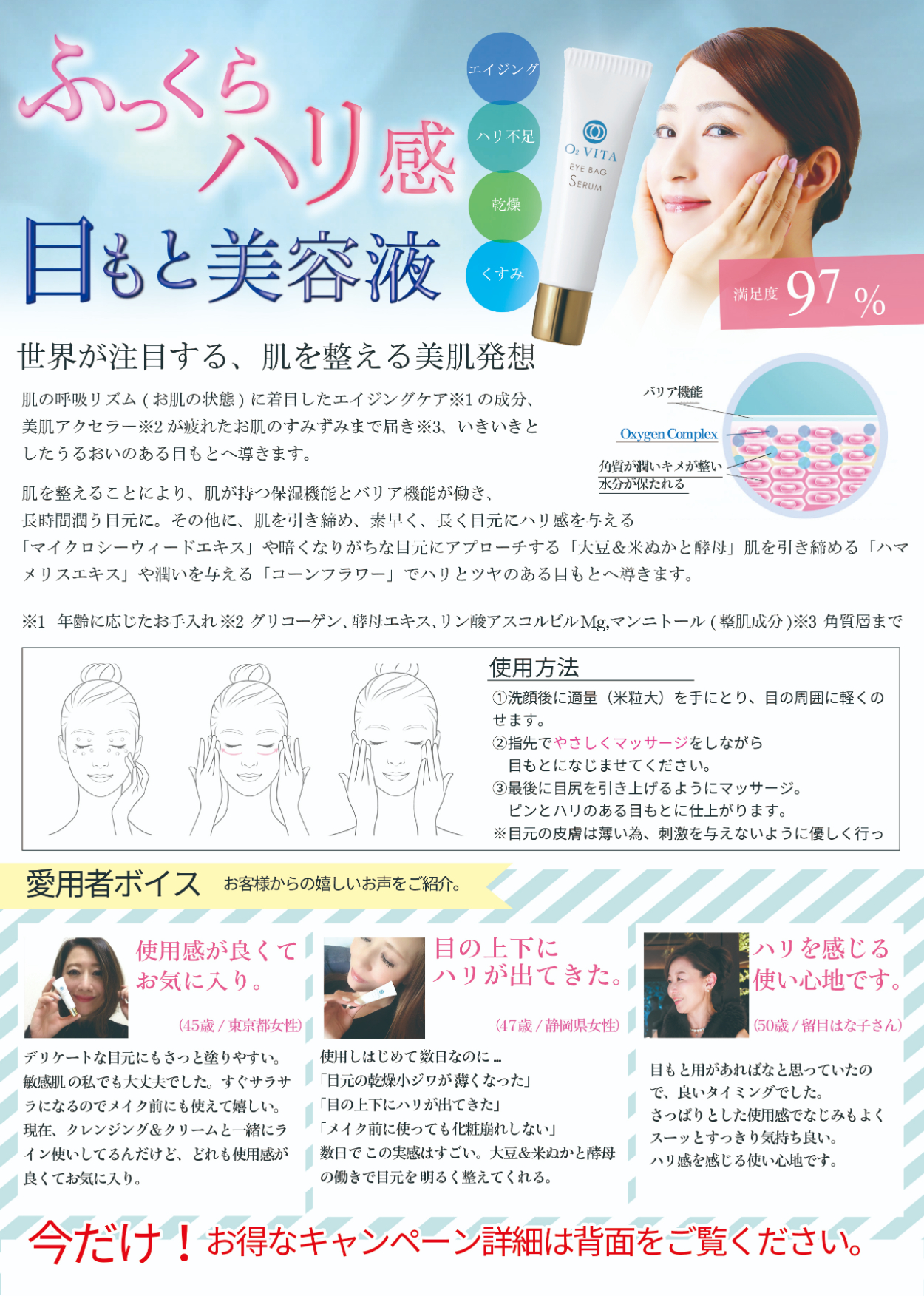 自社化粧品の広告・宣伝目的のため、宝石雑誌の折り込みチラシを4商品分作成いたしました。