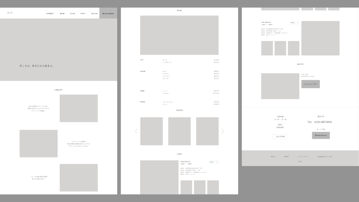 架空美容室 のWEBサイトを制作(制作期間:2週間 制作時期:2023年11月)