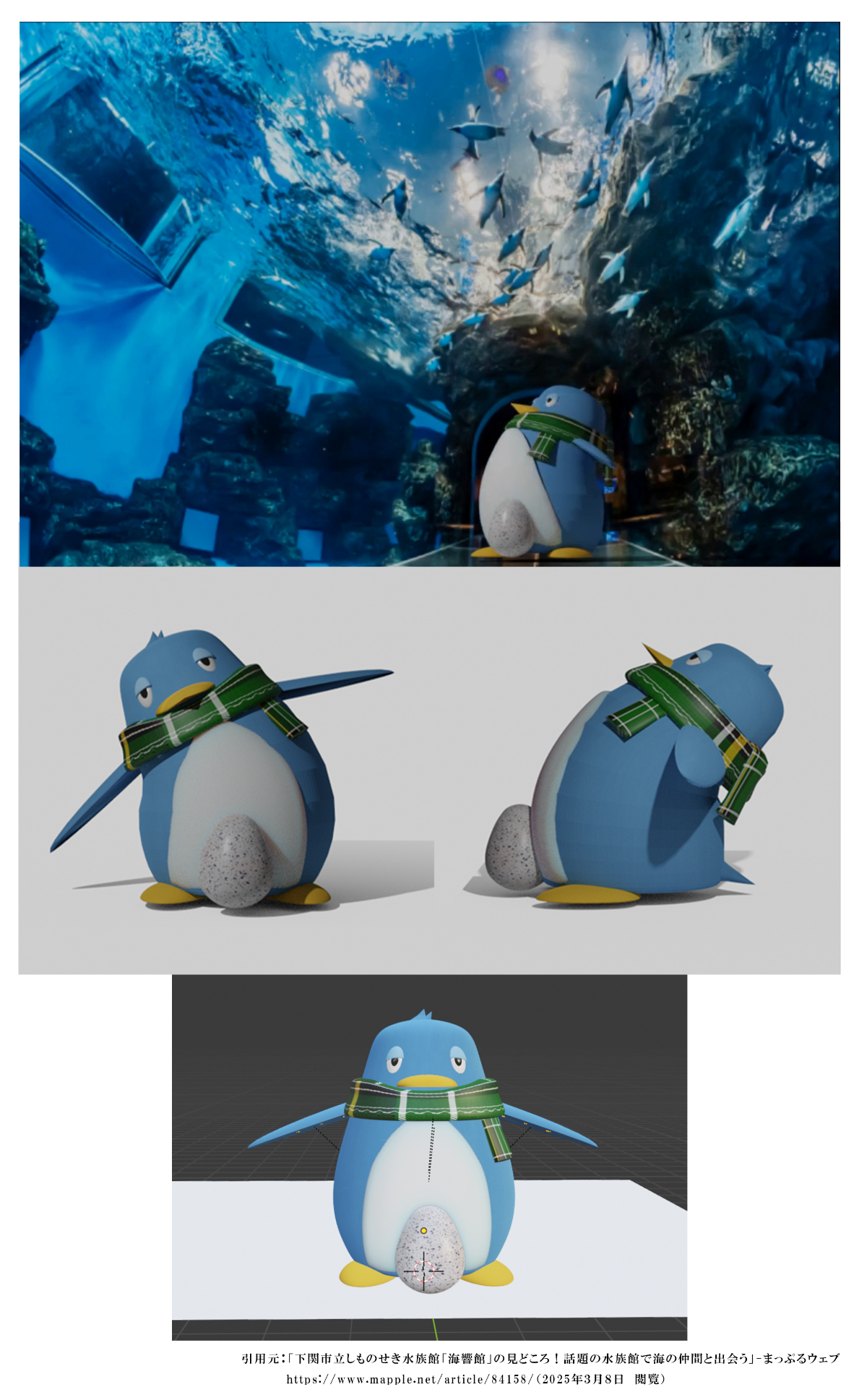 実際の動画を載せることができず残念ですが、海響館に立つペンギンや細部までこだわったフォルムを見ていただけると嬉しいです。