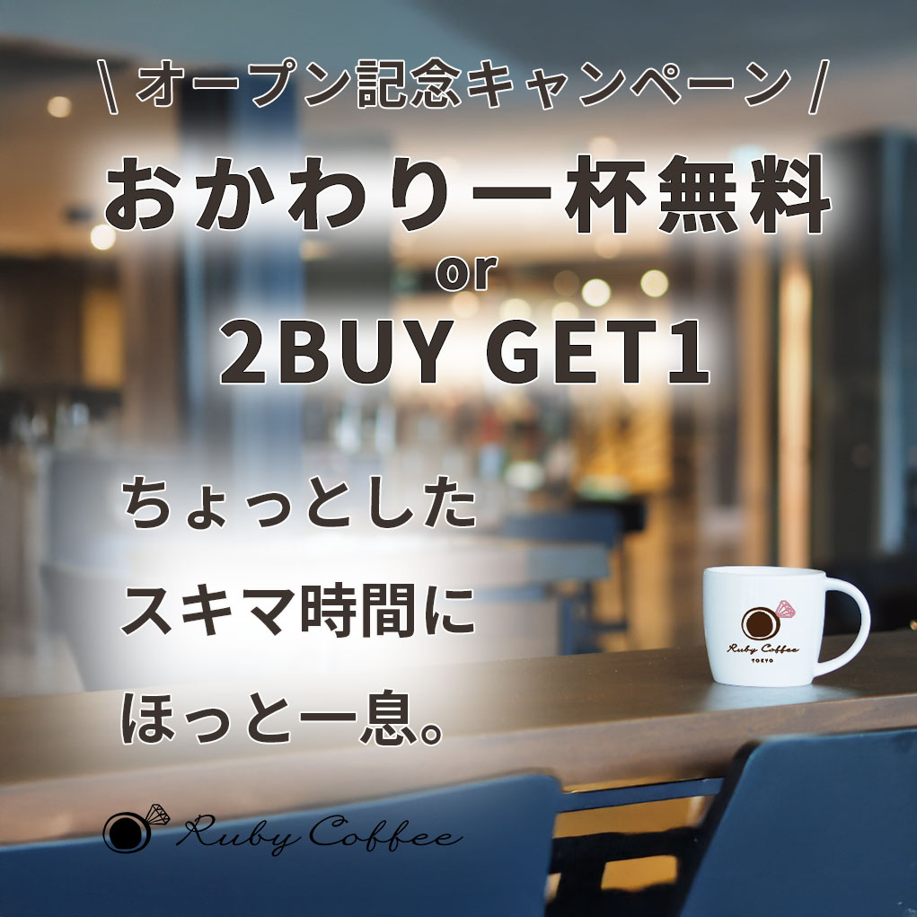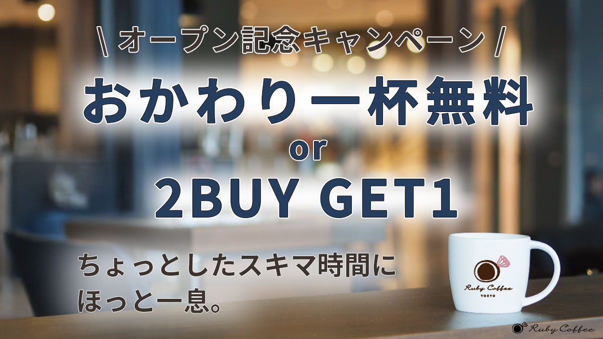 - キャンペーン情報(「おかわり一杯無料 or 2BUY GET1(一人で楽しむ方には、おかわり無料を。2人できた方には、お一人分無料を。)」※有効期限は当日限り )