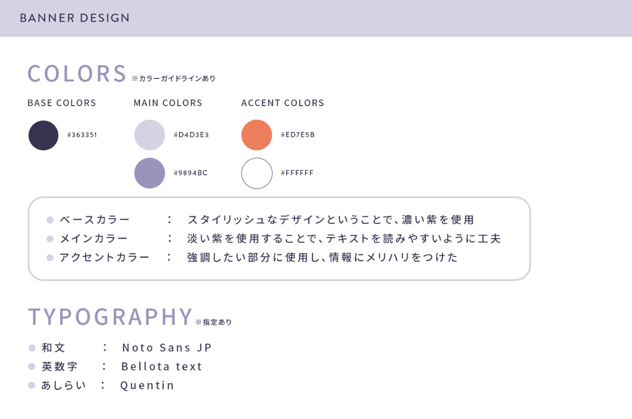 制作を通して感じたのは、全体の統一感や、シンプルなあしらいをどう活かすかがとても重要だということです。また、配色についても、色数を絞ることでかえって「色の優先順位」や「強弱のつけ方」が求められると実感しました。限られた色の中で、伝えたいことをどう見せるかに工夫が必要でした。