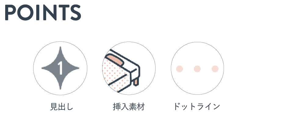 キレイになるのを連想させる✨(キラキラ)を、見出しやあしらいに取り入れました。挿入素材は色をトンマナに合わせ、素材の柄と仕切り線をドットに統一しました。部屋が整理整頓されていくようなイメージで、バナー自体にもまとまった印象をもたせました。