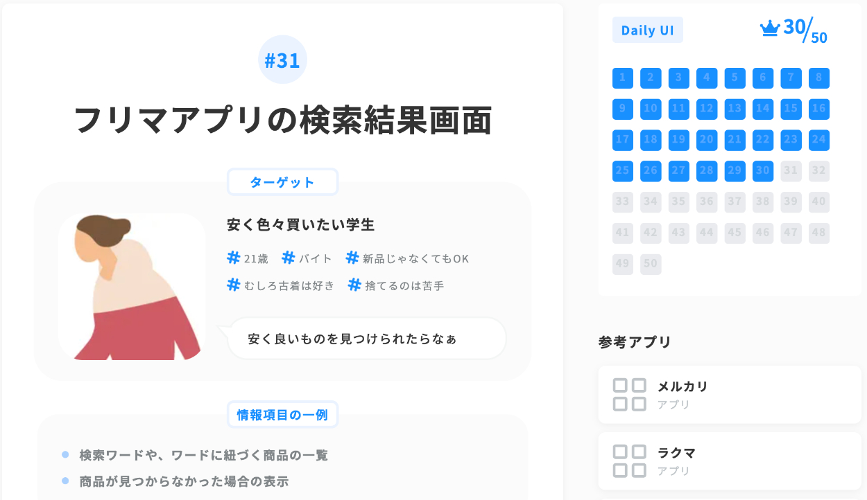 その中の「Daily UI」は、1日1画面制作できるお題を、50日分提案してくれるサービスです。
