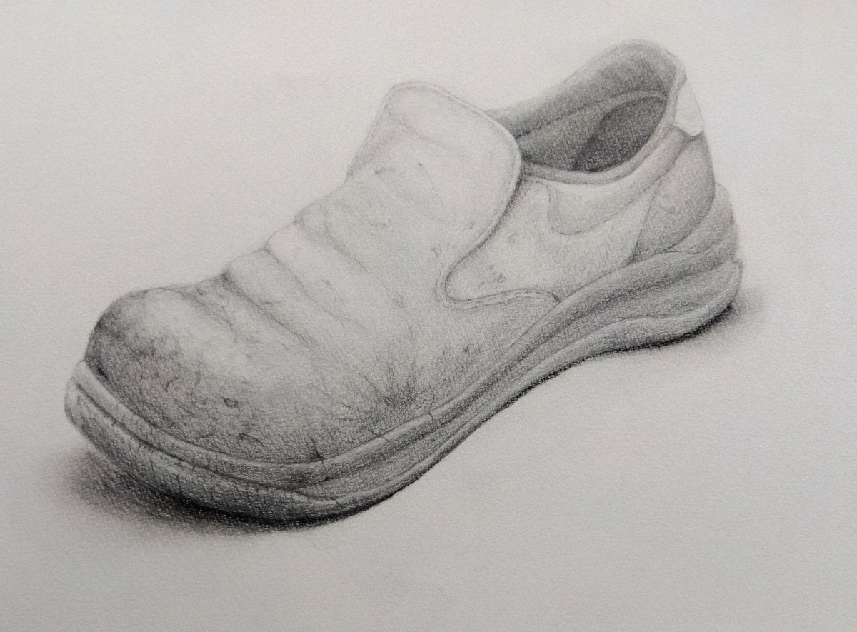 デッサンの授業課題「靴」にて、父の白い作業靴を描きました。