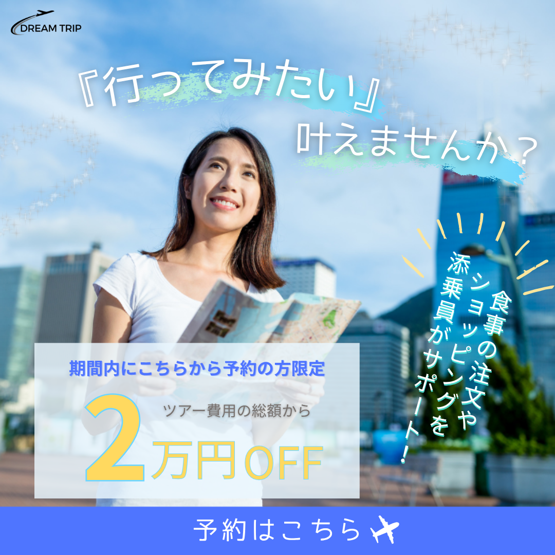 割引キャンペーン(ツアーの総額から2万円OFF、期間内にこちらから予約の方限定)