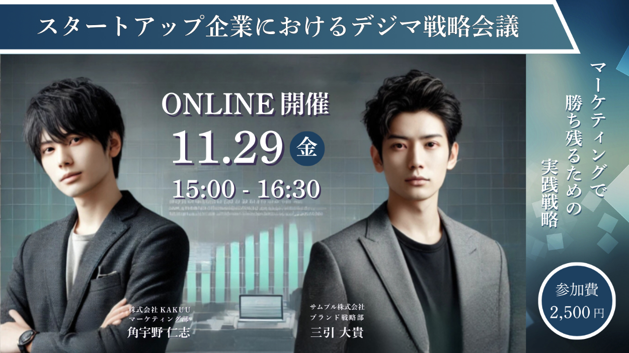 次に、メイン情報の視認性を確保するため、「ONLINE開催」「11.29(金)15:00-16:30」といった日時や開催形式を中央に大きく配置しています。この配置により、参加者が重要な情報を即座に認識できるようにし、視覚的な焦点を明確化しました。