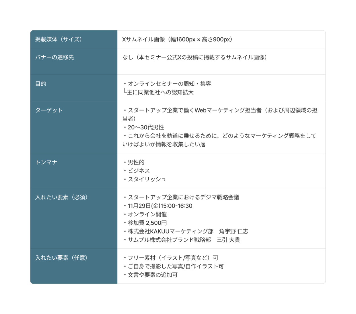 また、写真と背景の使い方にも配慮しました。登壇者2名を左右対称に配置し、バランスを取りながらビジネスらしい服装で信頼感を演出しています。背景にはグラフやオフィスのシルエットを淡く配置することで、デジタルマーケティングやビジネスを連想させる雰囲気を作り出し、セミナーのテーマを補完しています。