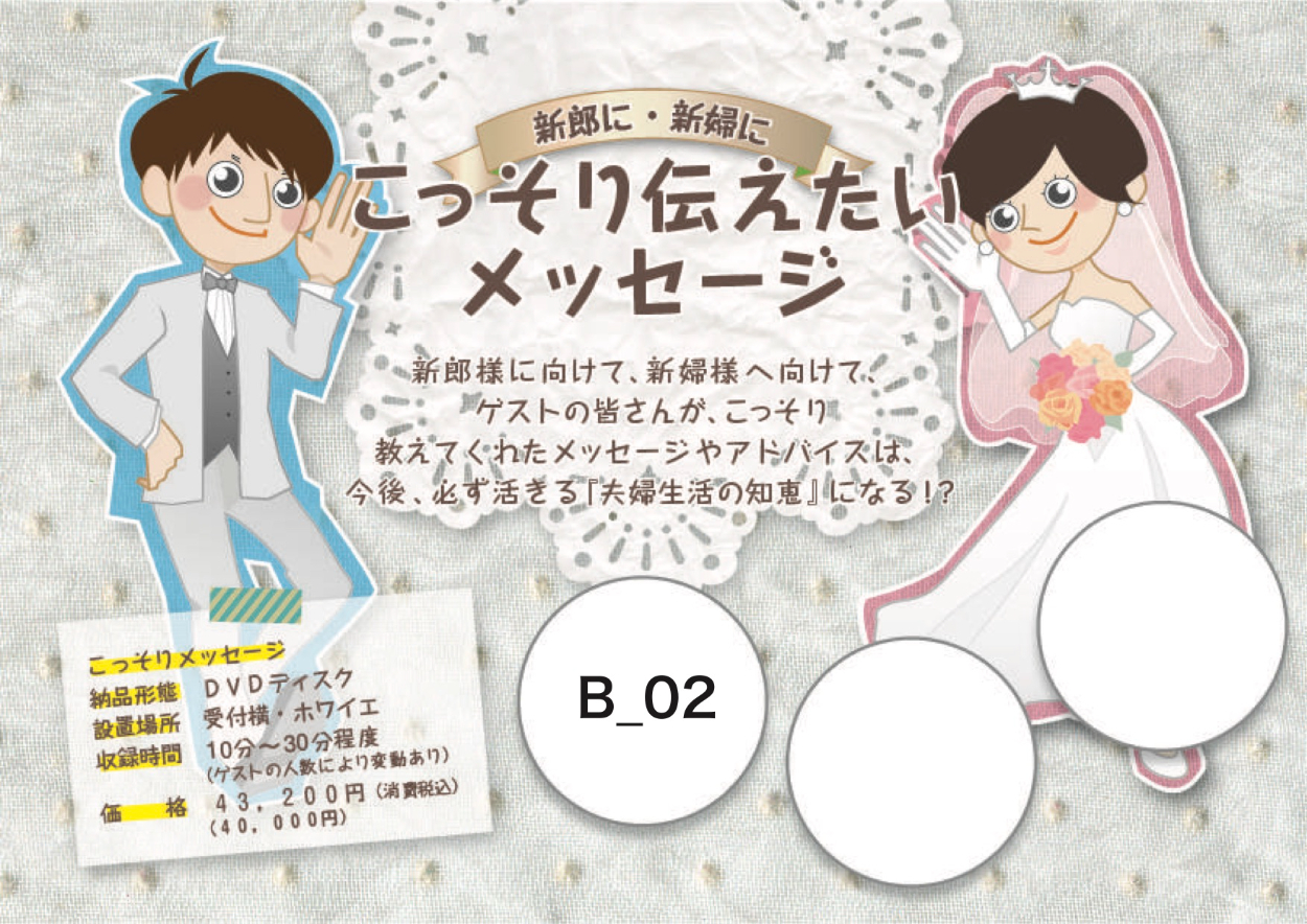 結婚式場での商材用イラスト miharu 映像エディター・カメラマン・WEB,グラフィックデザイナー OVERVIEW 結婚式場で使う商材用イラストを担当しました。 YEAR 2016 「こっそりボイス」というゲストの声を集める商材用にイラストを作成しました。2パターン作成し、結婚式場側に選んでいただきしています。