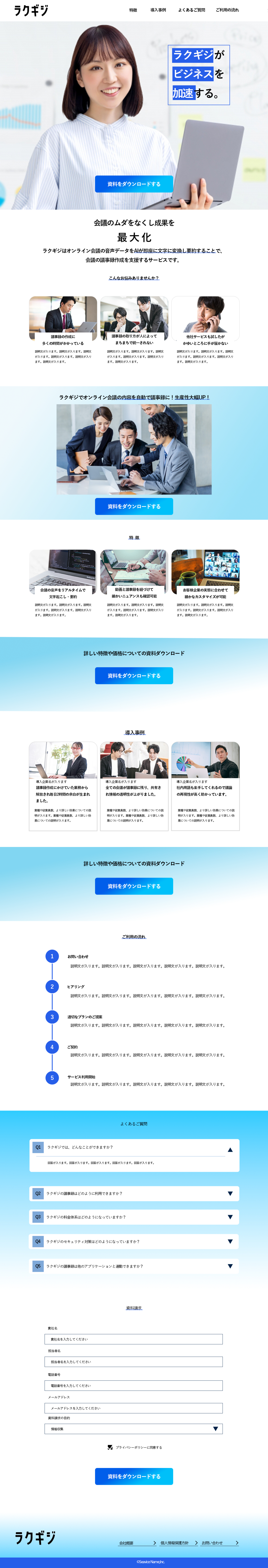 【サイトデザイン・課題制作 】 架空・AI議事録作成サービスの広告サイト