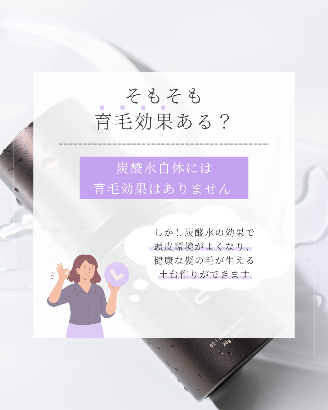 ヘアファンデーションを販売するTOFU様の公式Instagramの投稿作成です。 『育毛に炭酸水が良いってほんと!?』をテーマにTIPS紹介を視覚的に分かりやすいように意識して制作しました。