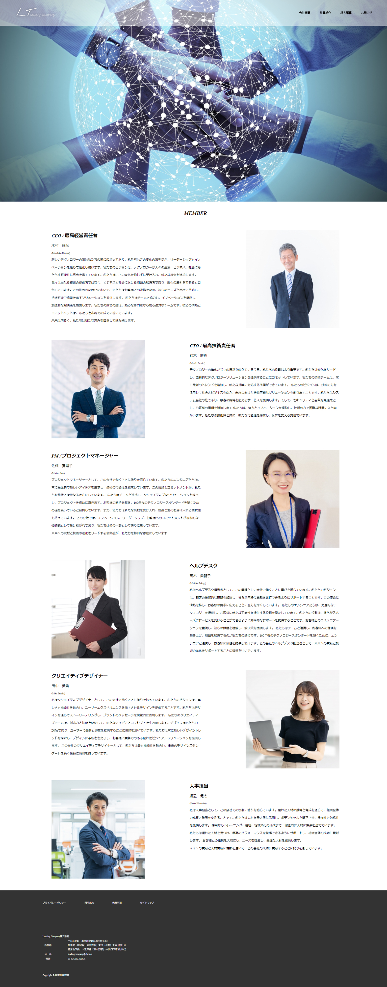 - 堅苦しくならないようファーストビューには比較的カジュアルな人物写真を配置