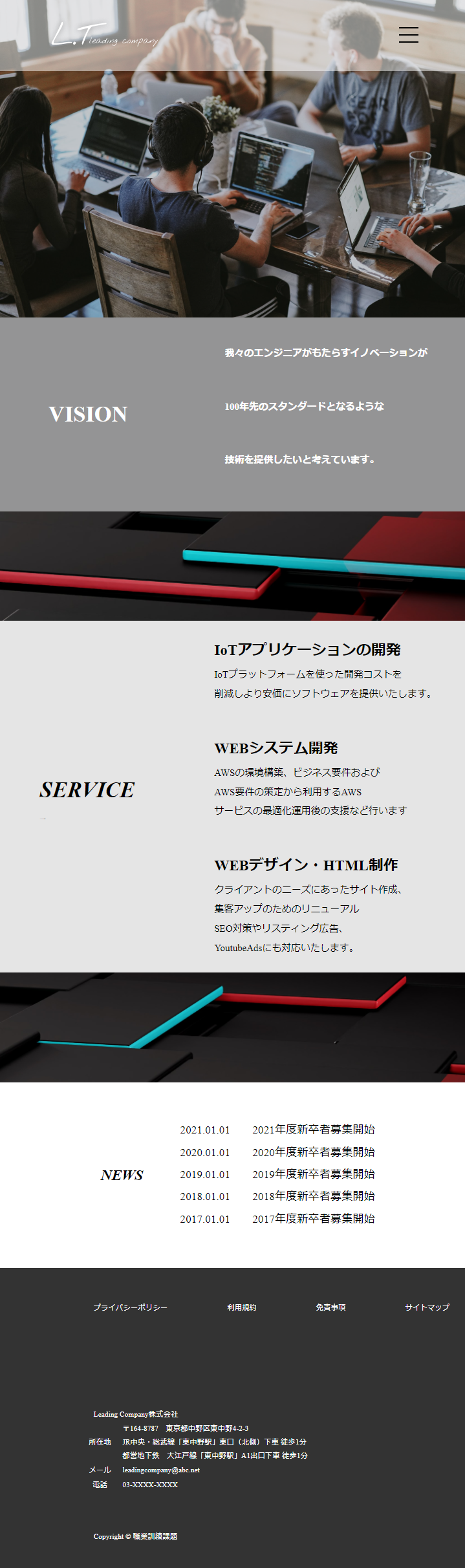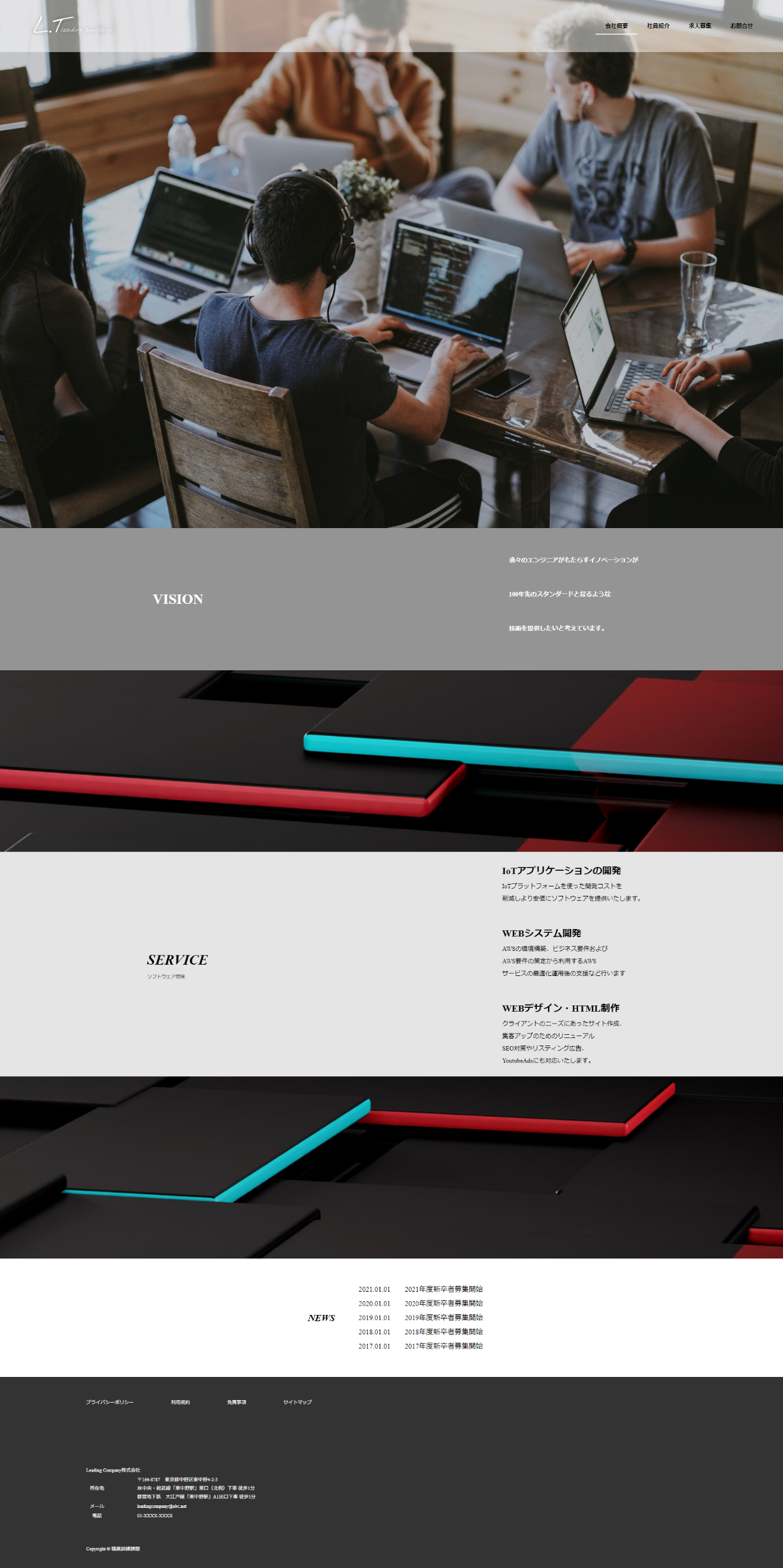 - 企業理念、サービス、新着情報をシンプルにわかりやすく配置