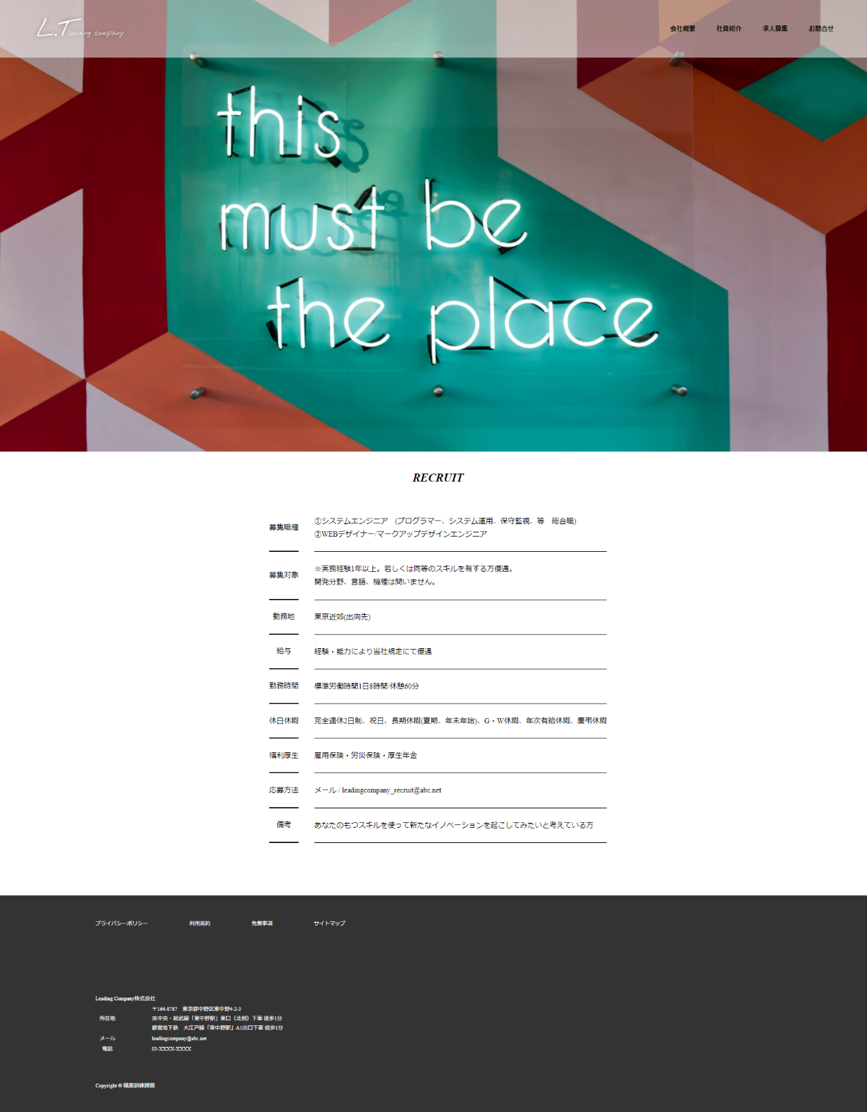 - 会社概要、求人ページはほぼ同じ形で作成しごちゃごちゃしないよう統一感を意識しました。