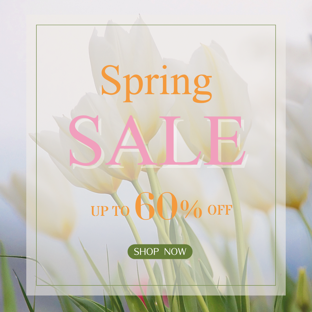 春の花、チューリップを強調しつつ、柔らかい配色でSALEバナーを作成しました。