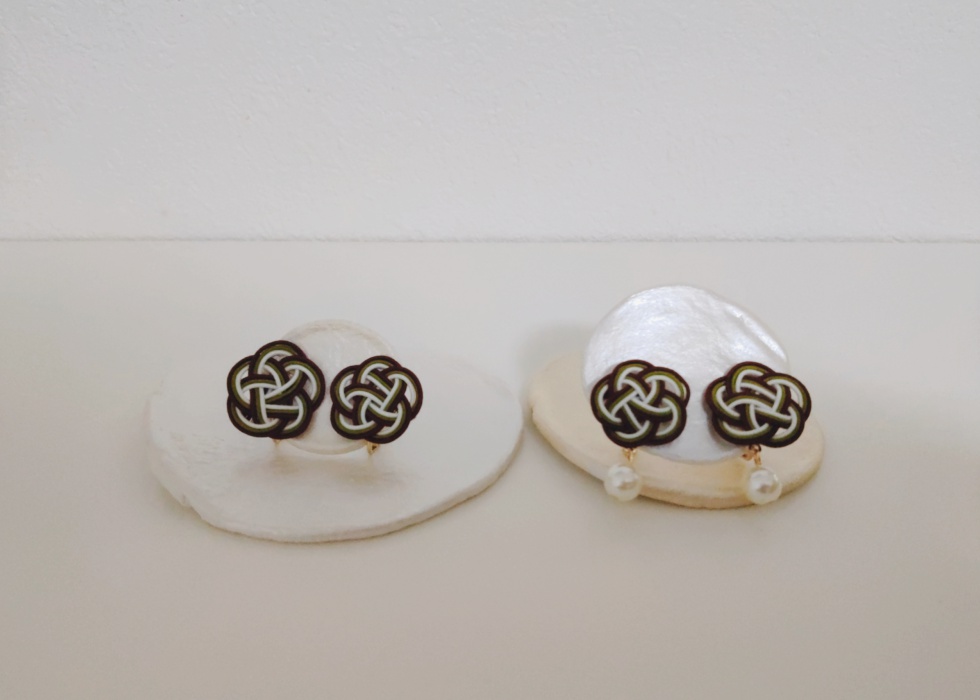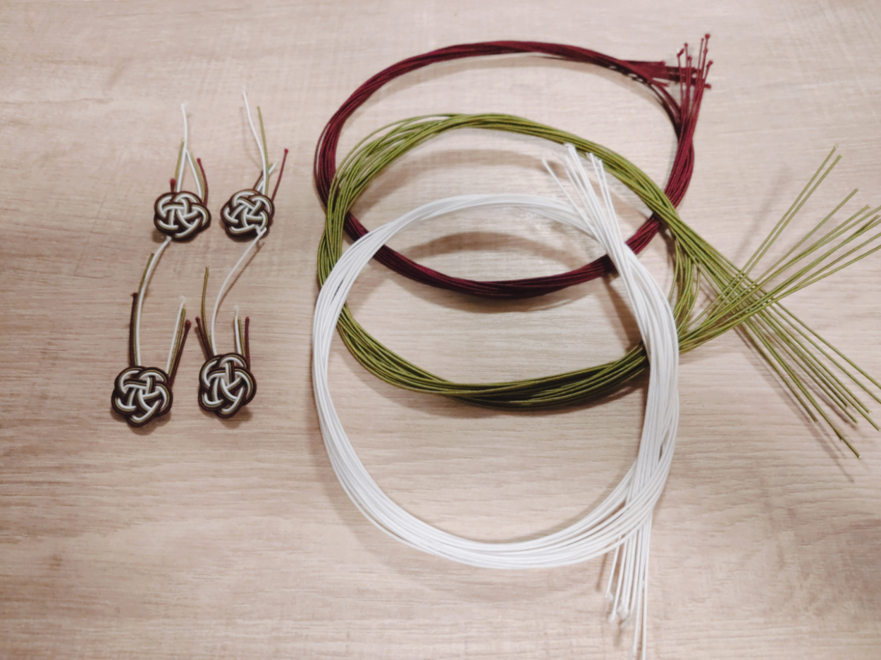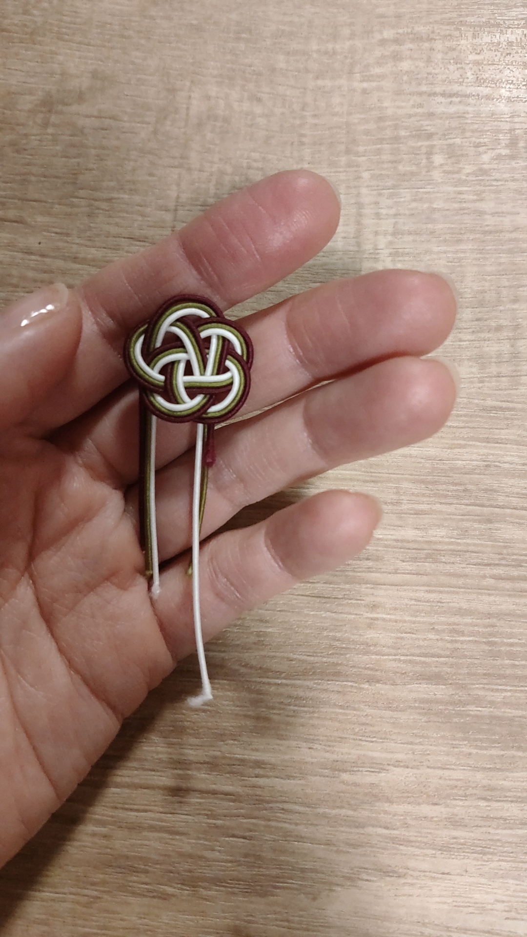 葡萄色・松葉色・白磁色の3色で梅結びを作りました。