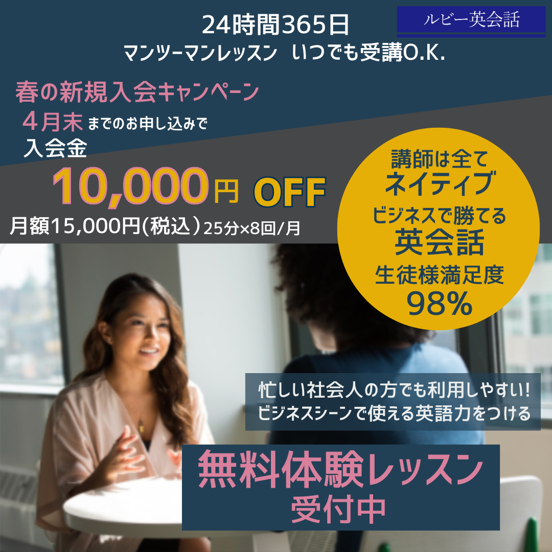 忙しい社会人の方でも利用しやすい様に、マンツーマンレッスンを24時間365日いつでも受講していただけるのが特徴です。