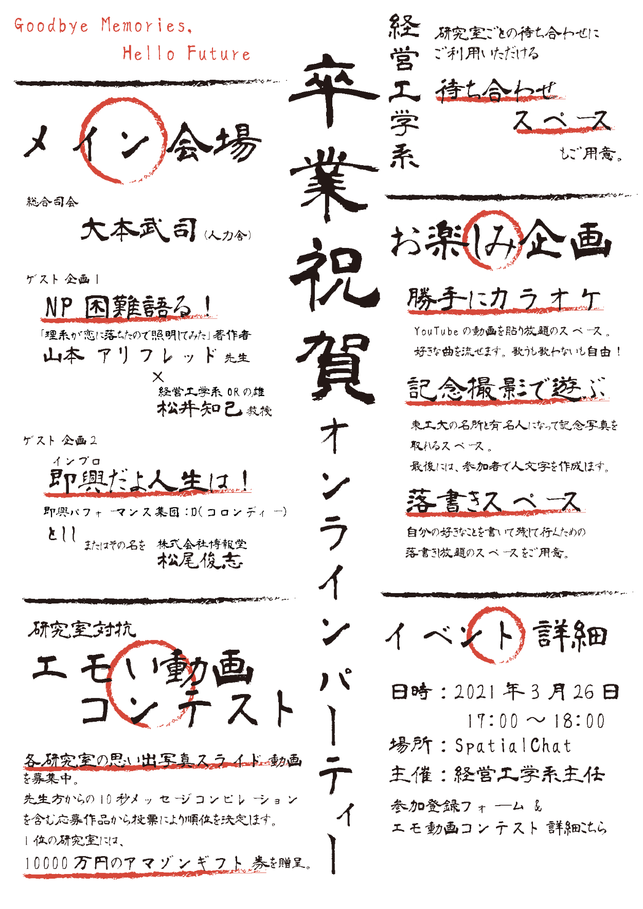 2020年度経営工学系卒業祝賀オンラインパーティーのポスター