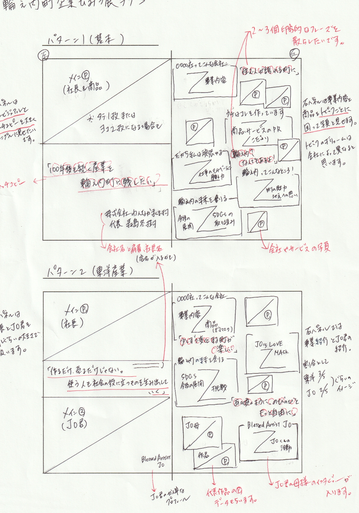 1.8mの等身大パネルを効果的に活用するために、まず企業を代表する顔(事業主)と商品を大きく扱い、商業施設を訪れる岐阜西南農地域の来場者に対して、地元企業を知ってもらい、親しみや愛着を抱いてもらえるように、文章はあえて高密度のボリュームで執筆。一方で、遠目でもその企業のキーワードが目につくように強調しています。
