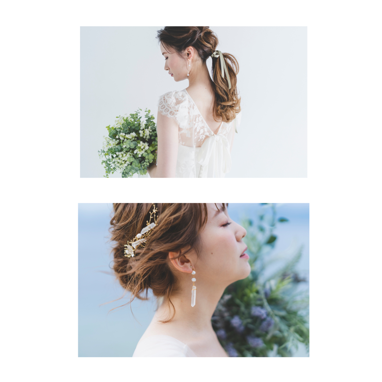 花束は雫のラインを沿うように配置した。