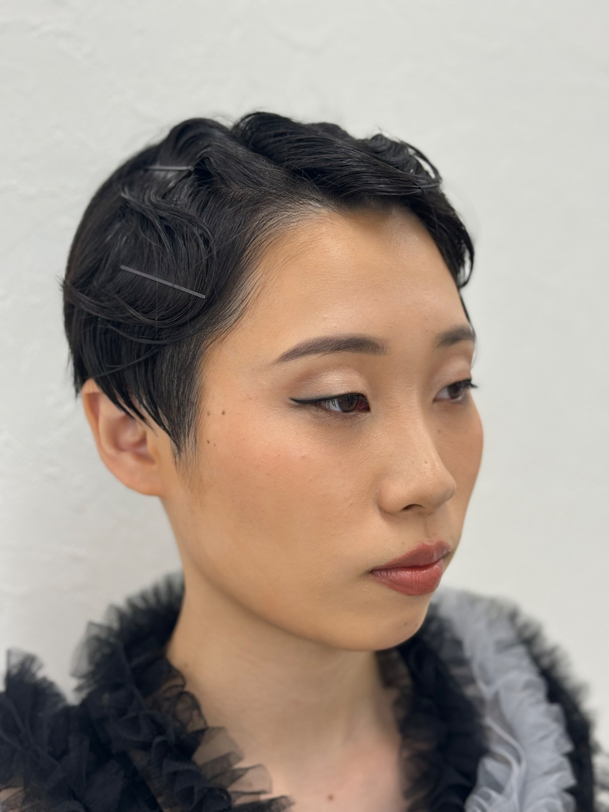 モデルさんの雰囲気に合わせてナチュラルなカットクリースに仕上げました。