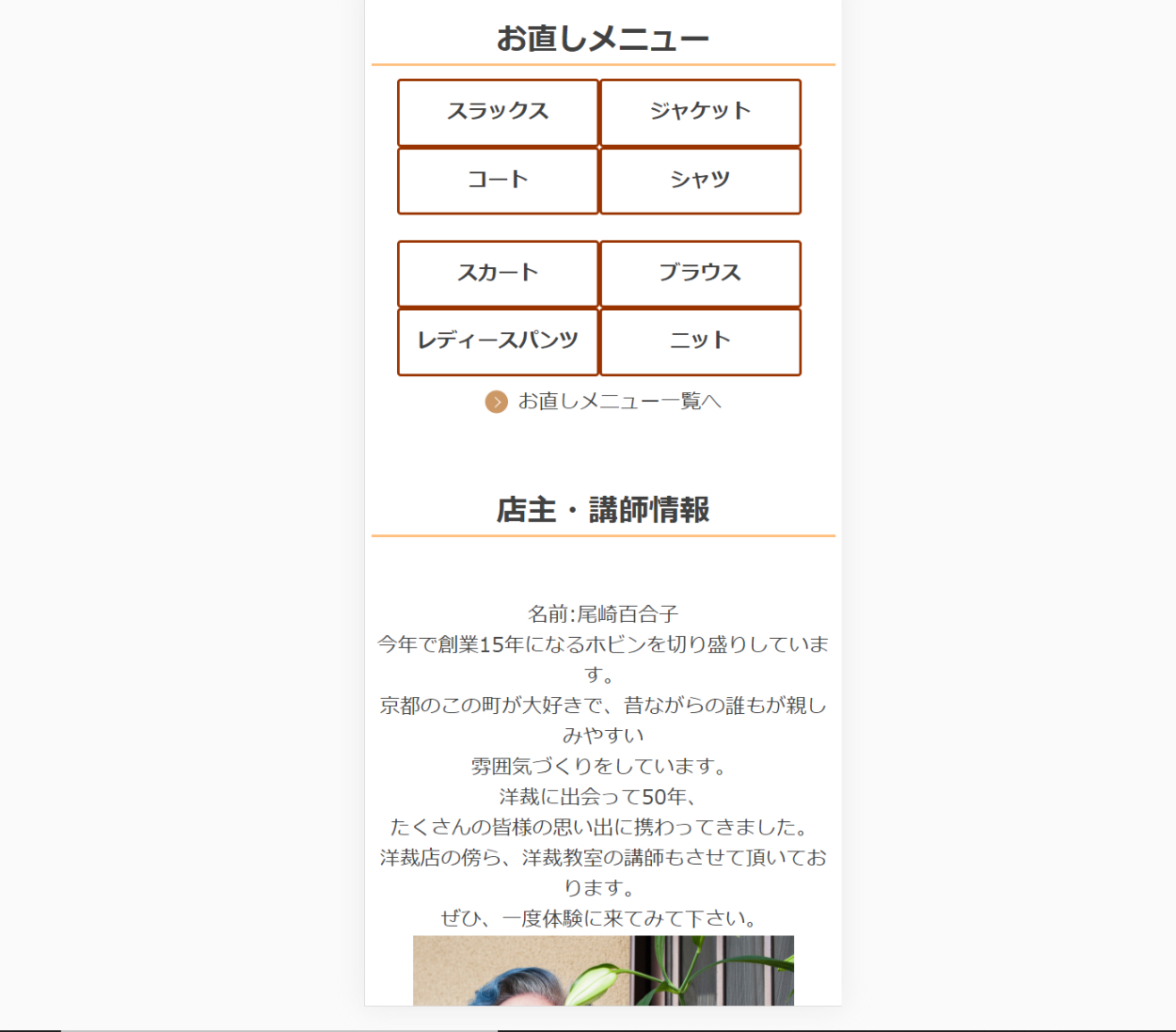 70歳後半女性。店主とが同世代で。子供たちもとっくに独立し、自分の時間をどう使っていこうか第二の人生を歩んでいる方。時間に余裕ができ元々なにかやりたいことがあったがなかなか始められなかった人。ファッションに興味があるとともに、習い事にも興味がある。同世代の話相手を求めている。地元意識も強く中心地に行くよりかは、町の習い事で緩く生活の一部にしていきたい人。