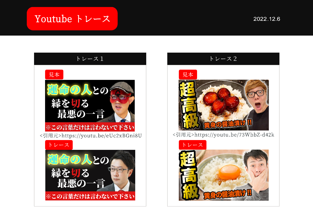バナー以外のアイキャッチの勉強のために、YouTubeのサムネイルをトレースをしました。 バナーと違う見せ方や効果を学ぶことができました。