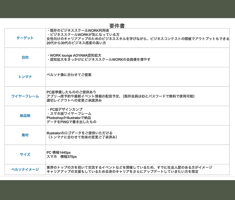 コワーキングスペースWORKlounge AOYAMAのLP制作課題